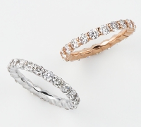 婚約当時のエンゲージリング選びの時に、フルエタニティリングに気持ちが有ったのですがいろいろ悩んだ結果、あの時は、シンプルな一粒ダイヤモンドに。当時マリッジのデザインも主人とお揃いにしたかったのでシンプルなもので・・・。でも、女性は年を重ねるごとにキラキラしたものが好きになっていくものですね・・・日々の生活の中で手元をキラキラさせたい、でもマリッジは変えたくない・・・